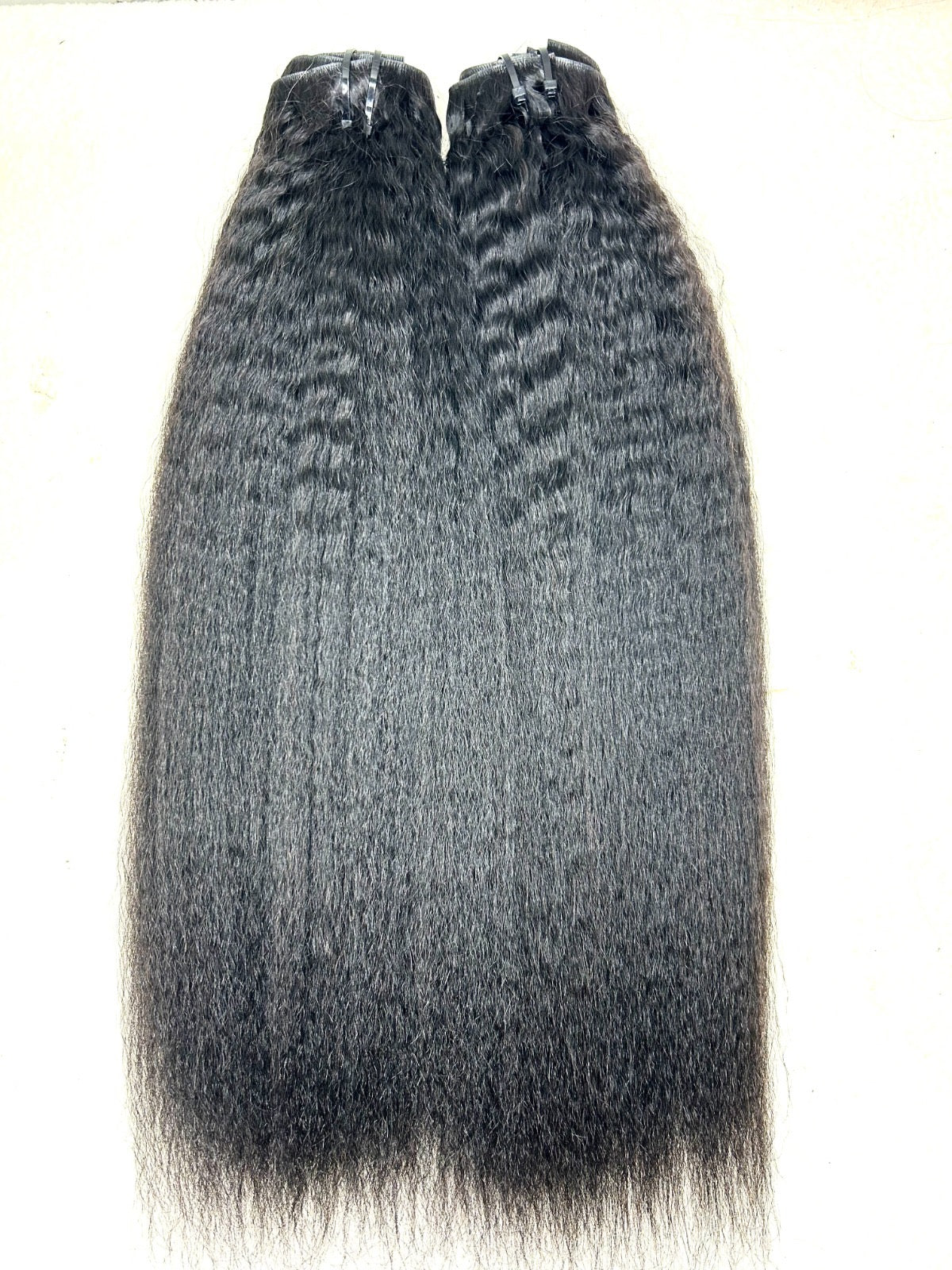 Immerse yourself in luxurious, effortlessly beautiful hair with our Premium Kinky Straight Bundles. Crafted from 100% virgin human hair, these bundles deliver the purest and most natural quality available. Sourced with integrity, this unprocessed hair boasts an incredibly soft texture and flawless, bouncing curl patterns. Imagine a cascade of voluminous waves that are defined but not overly tight, radiating with a captivating, healthy shine.